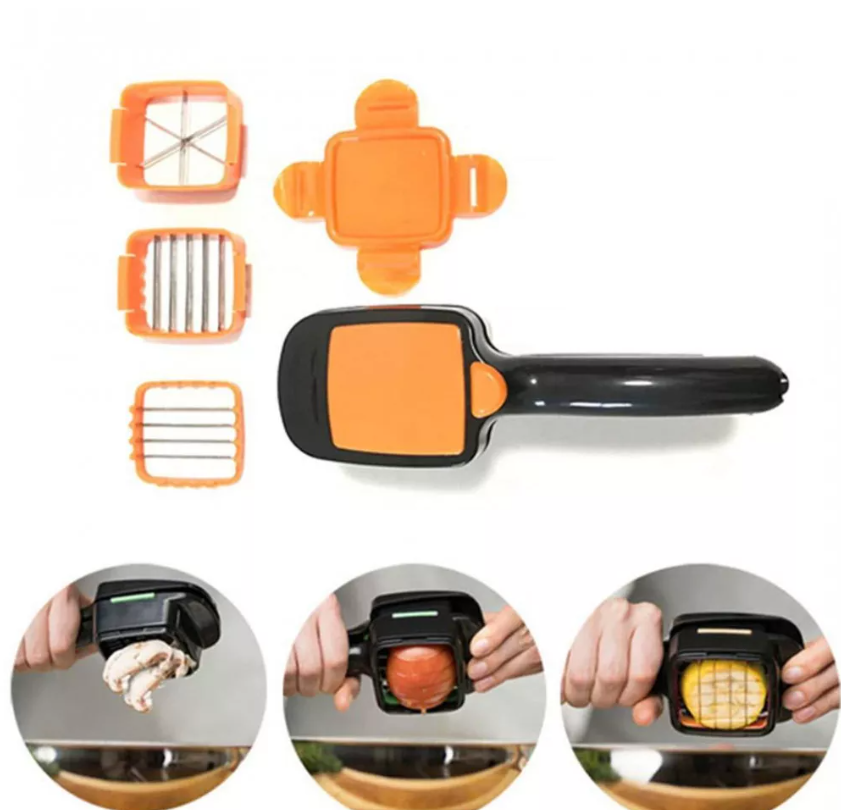 Feliator pentru fructe si legume 5 in 1 Dicer Dicer vei putea taia sub forma de cubulete si sferturi, toca si marunti toate tipurile de legume si fructe.