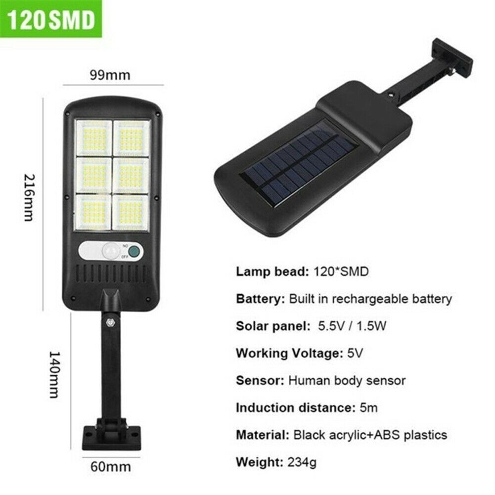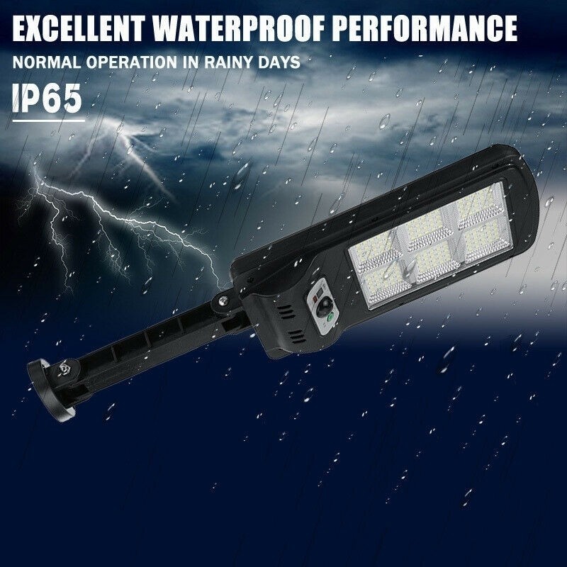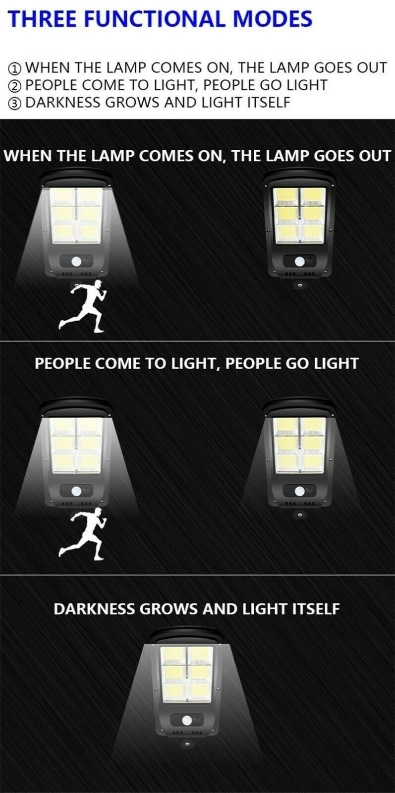 Lampa solara stradala 225 LED SMD, cu senzor de miscare, panou solar incorporat, brat de montare inclus si telecomanda cu functii multiple de setare a intensitatii luminoase si timpului de functionare teleMAG