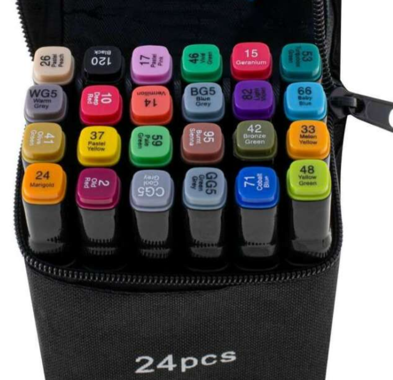 24 de culori vibrante – Markere de artă permanente cu două capete de calitate artist profesional. Include toate nuanțele de culoare primare și secundare de care artiștii au nevoie pentru desen, scriere, schiță, ilustrare, umbrire, proiectare, randare, manga, anime, cărți de colorat pentru adulți și multe altele. Perfect pentru a fi folosit pe hârtie, ceramică, sticlă, lemn, țesătură și multe altele.