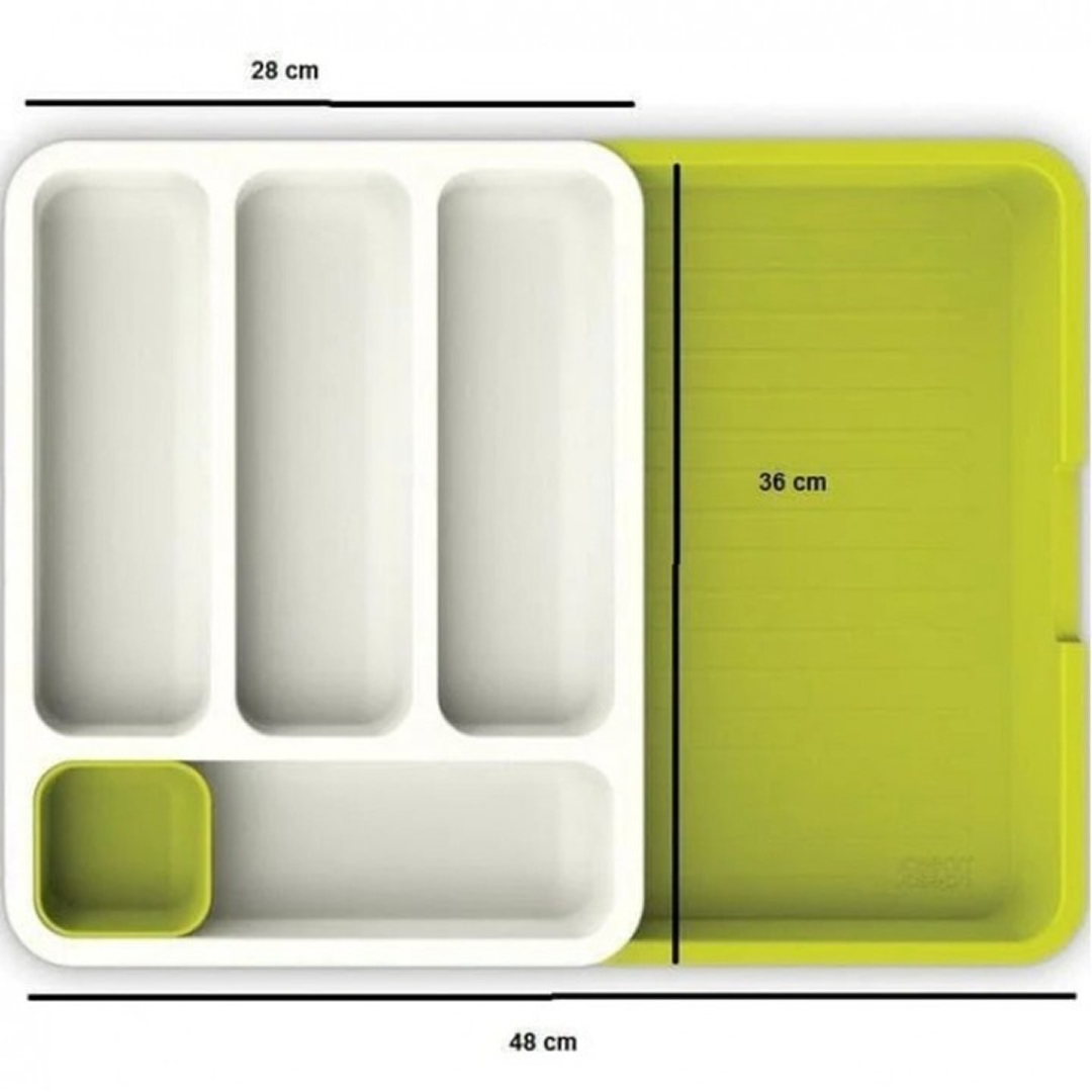 Organizator Sertar Bucatarie Extensibil | Suport Tacamuri 4 Compartimente | Ajustabil 29-48 cm | Polipropilena | Alb Verde
