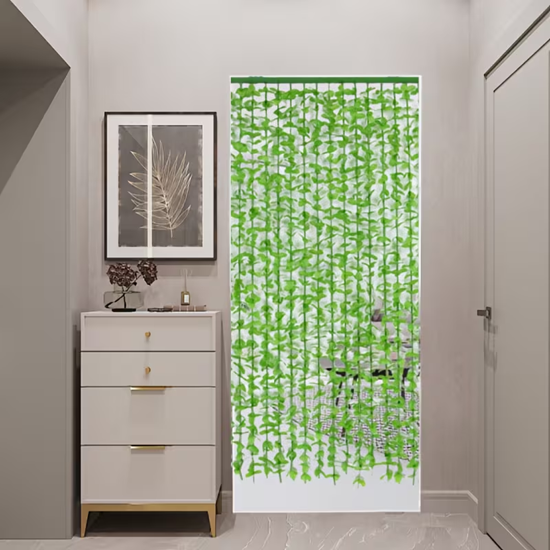 Perdea decorativa pentru usa cu design natural din bambus si frunze textile, ideala pentru protectie impotriva insectelor si decor elegant. Usor de montat si perfecta pentru orice incapere.