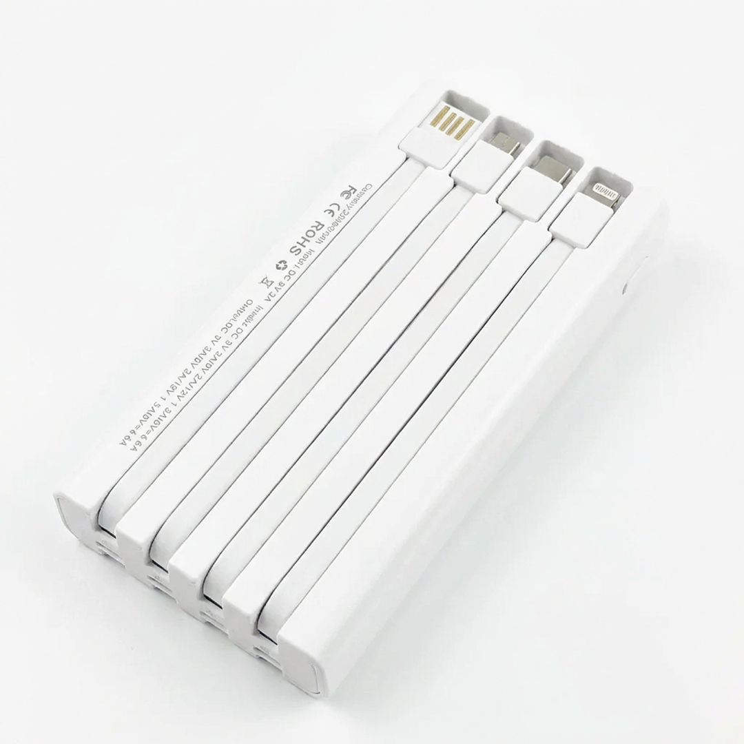 Acest power bank de 66W cu capacitate de 20000mAh este conceput pentru a oferi o solutie completa de incarcare pentru dispozitive moderne, fara a fi nevoie de cabluri suplimentare. Datorita celor 4 cabluri integrate si a porturilor externe, permite alimentarea rapida si simultana a mai multor gadgeturi.