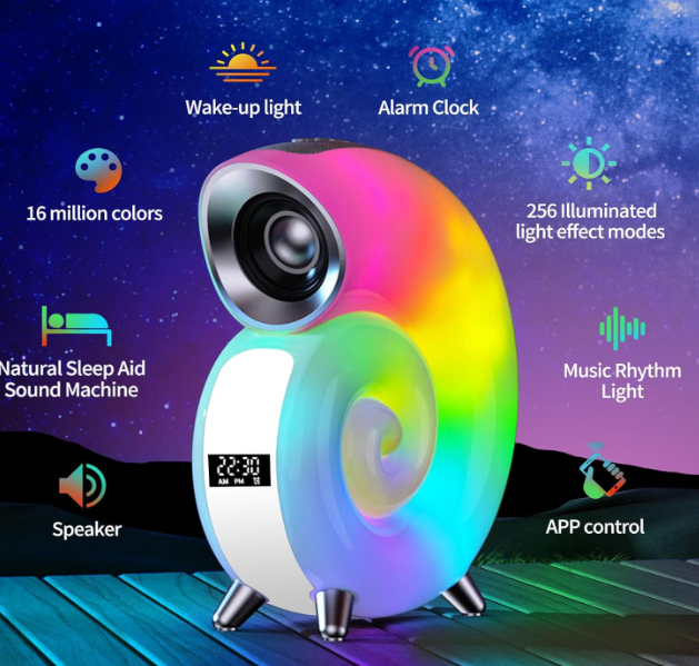 Acest dispozitiv include o lumină de noapte multicoloră, un difuzor Bluetooth de înaltă calitate, o funcție de simulare a răsăritului de soare și multe altele. Este soluția supremă de relaxare.