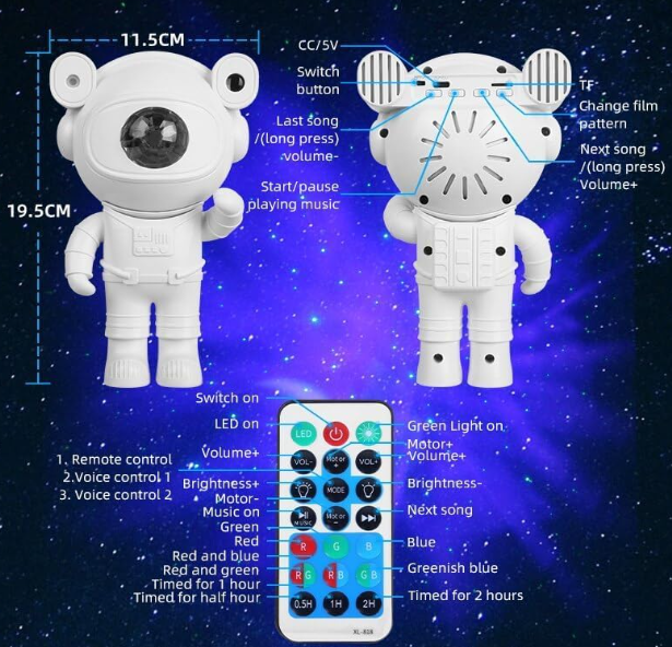 - Proiector neobisnuit cu stea LED în formă de astronaut.