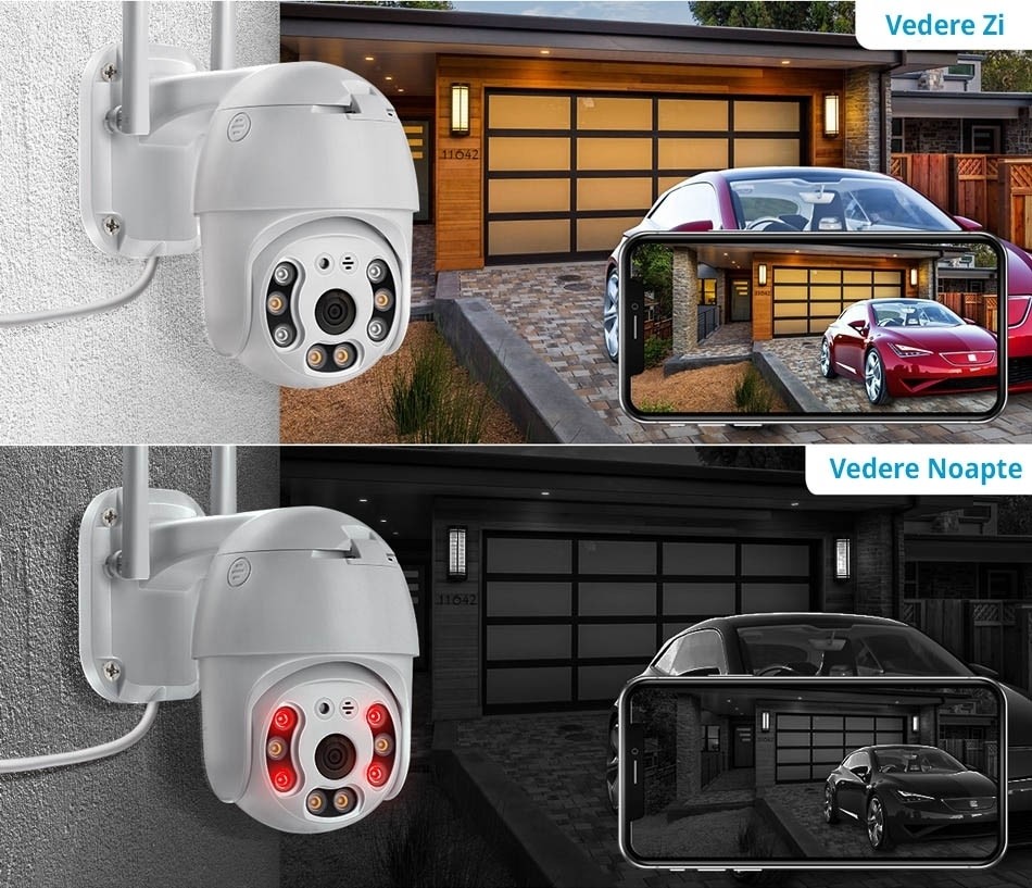 Controleaza Camera - Controleaza camera atat pe orizontala cat si pe verticala pentru un unghi de vizualizare de pana la 355° , controleaza iluminarea IR si iluminarea LED.