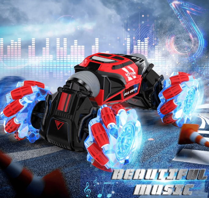 Pregătește-te să explorezi în aer liber și să faci trucuri cu mașina cascadorie 4X4 RC cu control prin gesturi si telecomanda. Este cadoul perfect pentru orice copil care iubește mașinile și aventura.