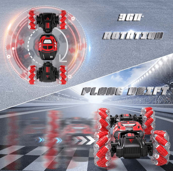 Mașina cascadorie 4X4 RC cu control prin gesturi si telecomanda pentru copii este jucăria supremă pentru ore întregi de distracție fără sfârșit. Această mașină cu telecomandă este proiectată să efectueze diverse cascadorii și să se deplaseze fără efort pe teren accidentat, cu capabilitățile sale complete de conducere și off-road. Este o mașină unică, care este echipată cu o funcție de gesturi controlată manual, permițând copiilor să-și controleze mișcările mașinii cu simpla mișcare a mâinii, făcând-o o experiență distractivă și interactivă.