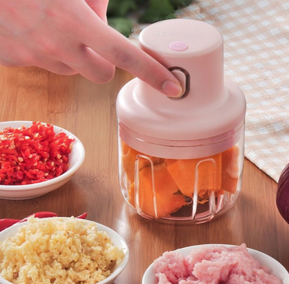 Acest mini tocator este un ajutor grozav in bucatarie, trebuie doar sa apasati butonul ON/OFF din partea de sus pentru a amesteca automat, acesta va ajuta sa tocati usturoi, ghimbir, ardei, ceapa, nuci, etc., economisind timp si efort.