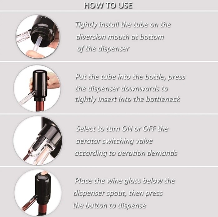 Designul delicat al acestui aerator electric de vin îl face să devină un cadou frumos pentru iubitorii de vin și pentru băutori. Setul poate fi un cadou perfect pentru orice ocazie precum ziua de naștere, nunta, aniversarea, absolvirea, pensionarea, inaugurarea casei.