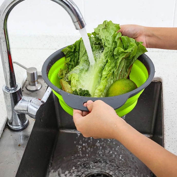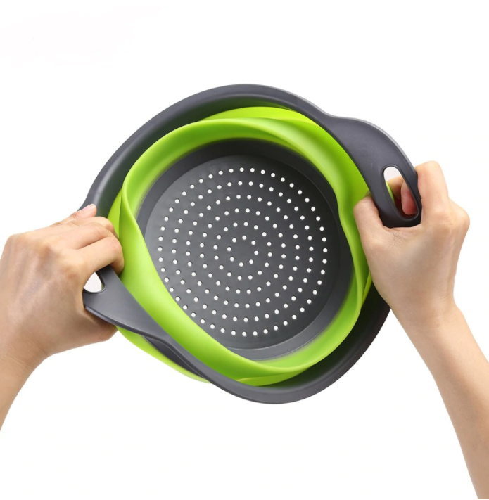 Vas strecuratoare pliabil din silicon termorezistent cu manere si sita .Este unul din produsele indispensabile bucatariei, deoarece este util ,usor de folosit si usor de depozitat deoarece este pliabil.Datorita manerelor acesta se poate atarna la vedere in bucataria dvs.