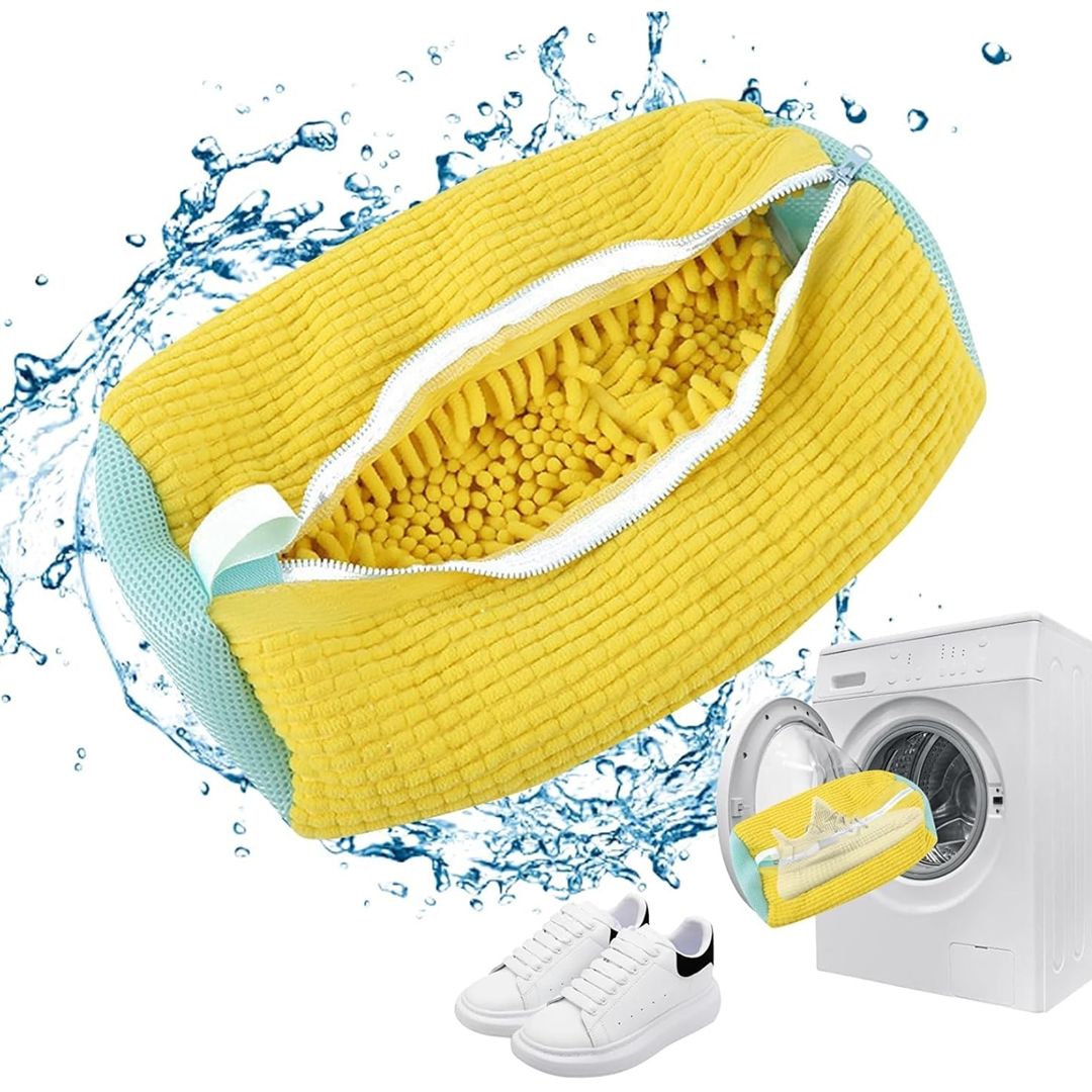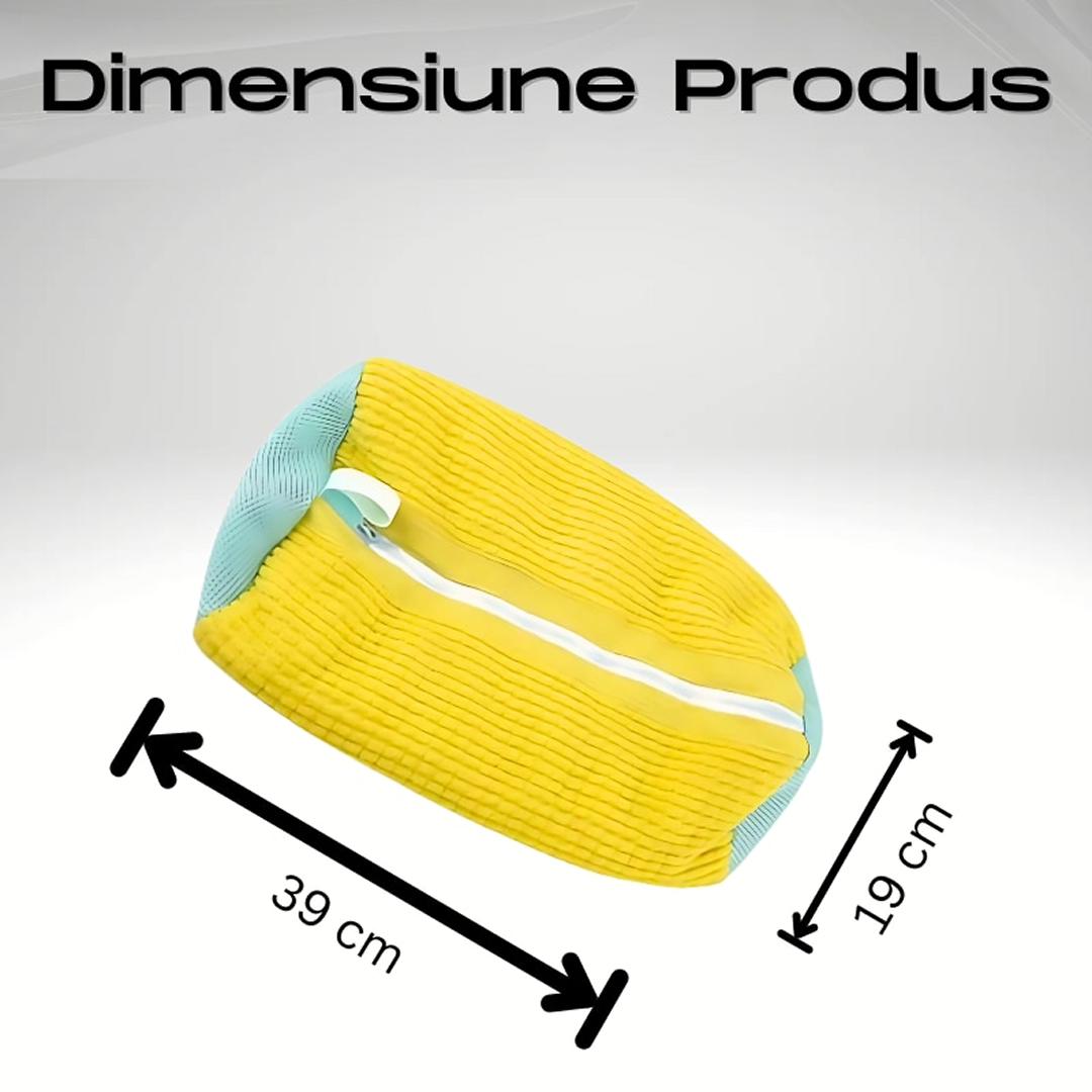 Sacul pentru spalat pantofi in masina protejeaza incaltamintea impotriva deformarii si previne deteriorarea tamburului masinii de spalat. Fabricat din material moale si rezistent, este potrivit pentru utilizari repetate. Dimensiunea de 39 x 19 cm permite spalarea pantofilor de pana la marimea 43. Sistemul de inchidere cu fermoar asigura fixare sigura in timpul ciclului de spalare.