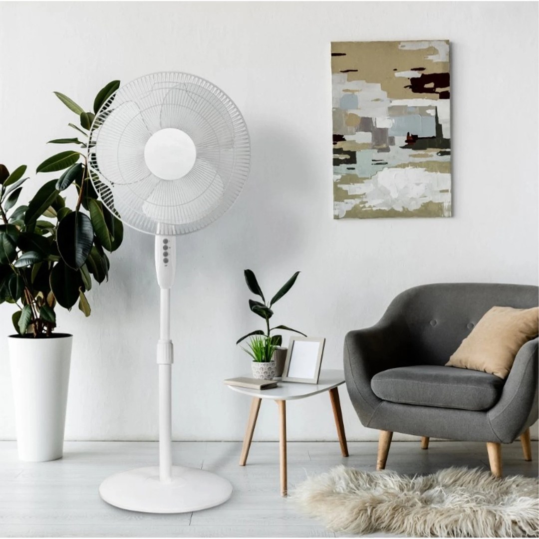 Ventilator cu picior de 16 inch, puternic si eficient, ideal pentru racorirea rapida a incaperilor. Dotat cu 3 viteze, oscilatie si timer, ofera confort si control complet.